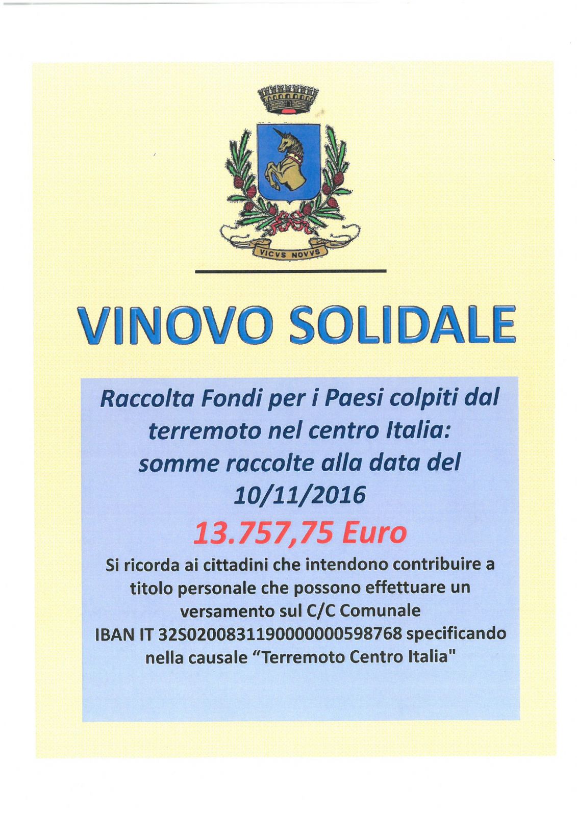 Raccolta fondi per i Paesi Colpiti dal terremoto nel Centro Italia; somme raccolte alla data del 10/11/2016