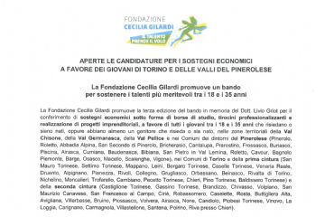 CANDIDATURE PER I SOSTEGNI ECONOMICI A FAVORE DEI GIOVANI DI TORINO E DELLE VALLI DEL PINEROLESE