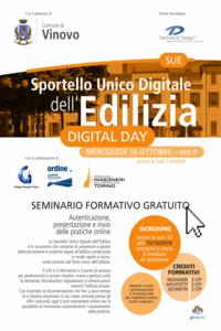 In data 16/10/19 presso la Sala Consiliare Piazza Marconi 1 Vinovo, si terrrà il seminario gratuito inerente lo Sportello Unico Digitale dell'Edilizia dedicato ai tecnici.