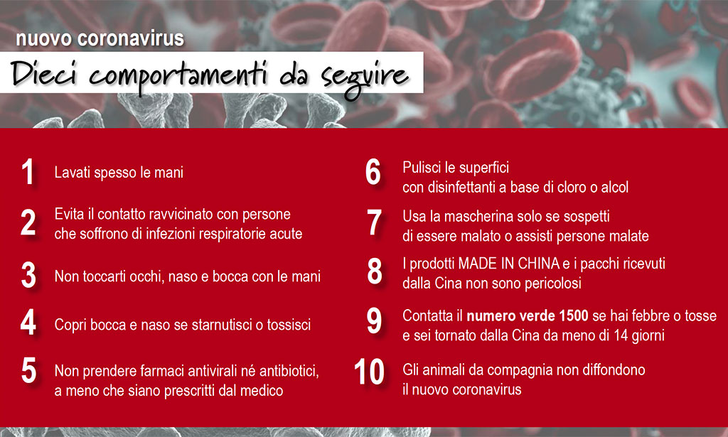 Stante la particolare e delicata situazione di emergenza, si raccomanda l’osservanza delle disposizioni impartite dal Governo nonché ad adottare le più volte ripetute regole di comportamento basilari per evitare il diffondersi del virus.
