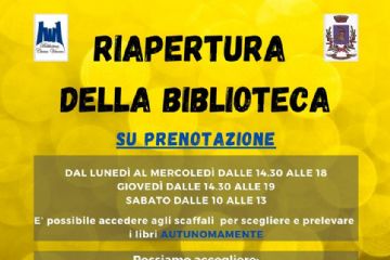 La biblioteca riapre su prenotazione nei seguenti giorni e orari: