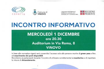 Mercoledì 1 dicembre alle ore 20.30 presso l'Auditorium di Via Roma 8 Vinovo il Covar14 si terrà un incontro informativo sul sistema di...