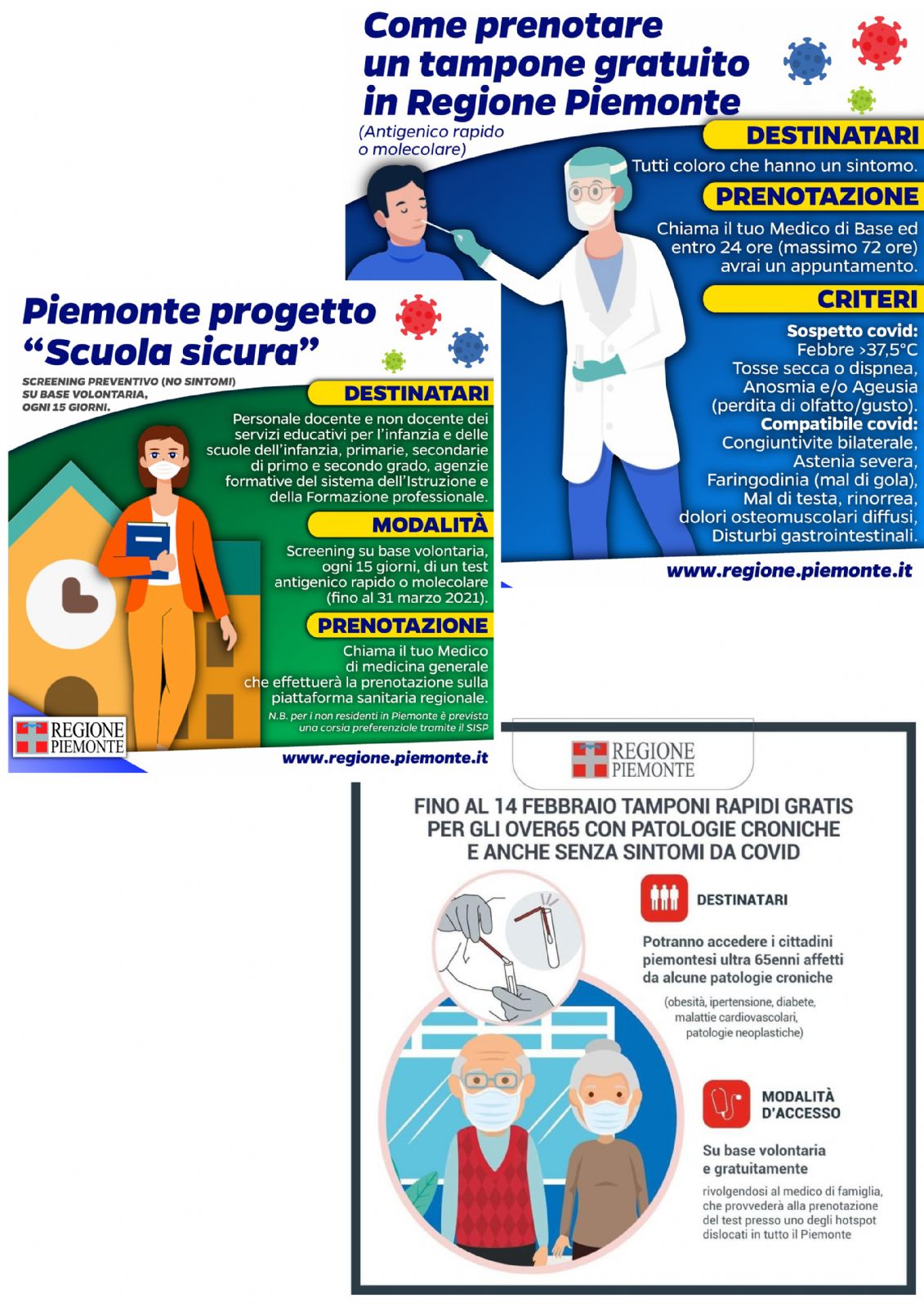 "Progetto Scuola Sicura": screening preventivo su base volontaria ogni 15 gg per gli operatori scolastici fino al 31 marzo 2021;