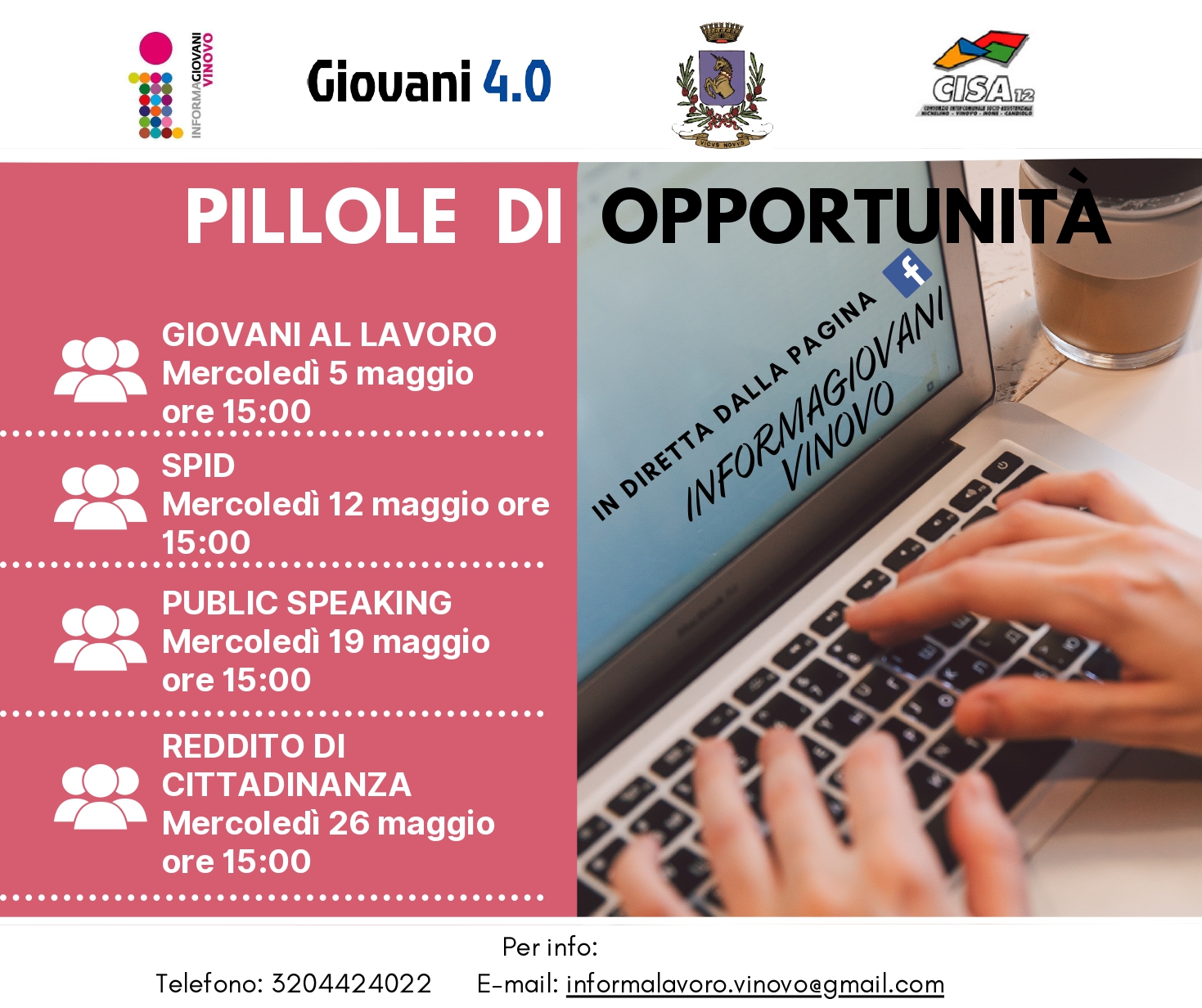Ha il via un nuovo ciclo di incontri informativi in diretta sulla Pagina Facebook Informagiovani Vinovo: l’appuntamento è sempre per il mercoledì alle ore 15. In questa seconda edizione saranno diverse le tematiche che verranno approfondite e le opportunità che verranno presentate.