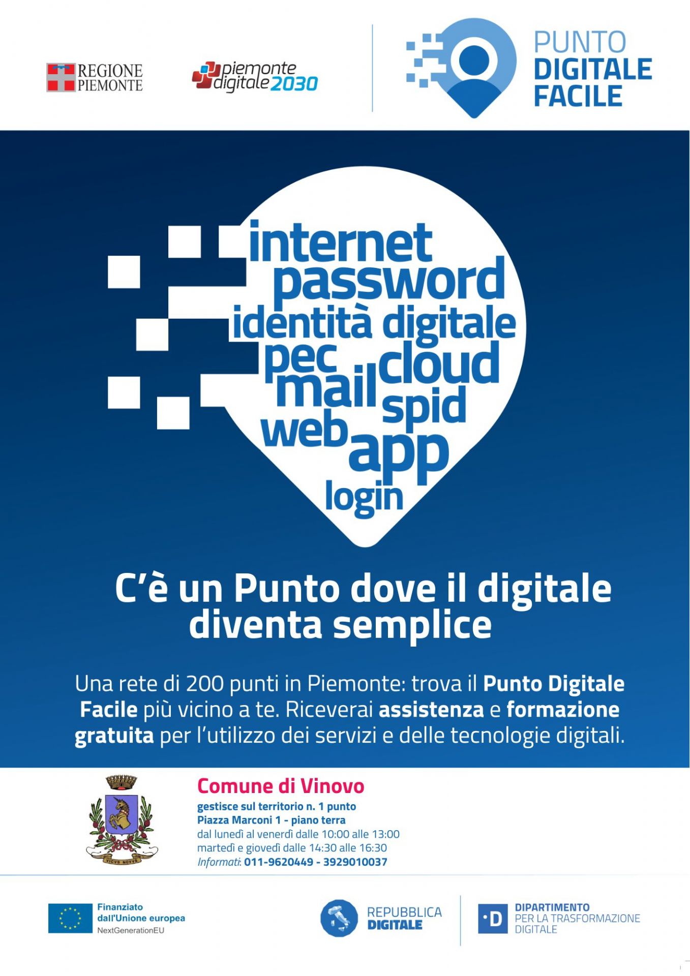Da mercoledì 20 novembre 2024 è attivo lo “Sportello amico digitale”, un servizio di affiancamento e formazione sulle modalità di accesso ai servizi online della Pubblica Amministrazione. Lo sportello digitale per i cittadini vinovesi sarà presso gli spazi dei servizi demografici, al piano terra del municipio, in Piazza Marconi 1.
