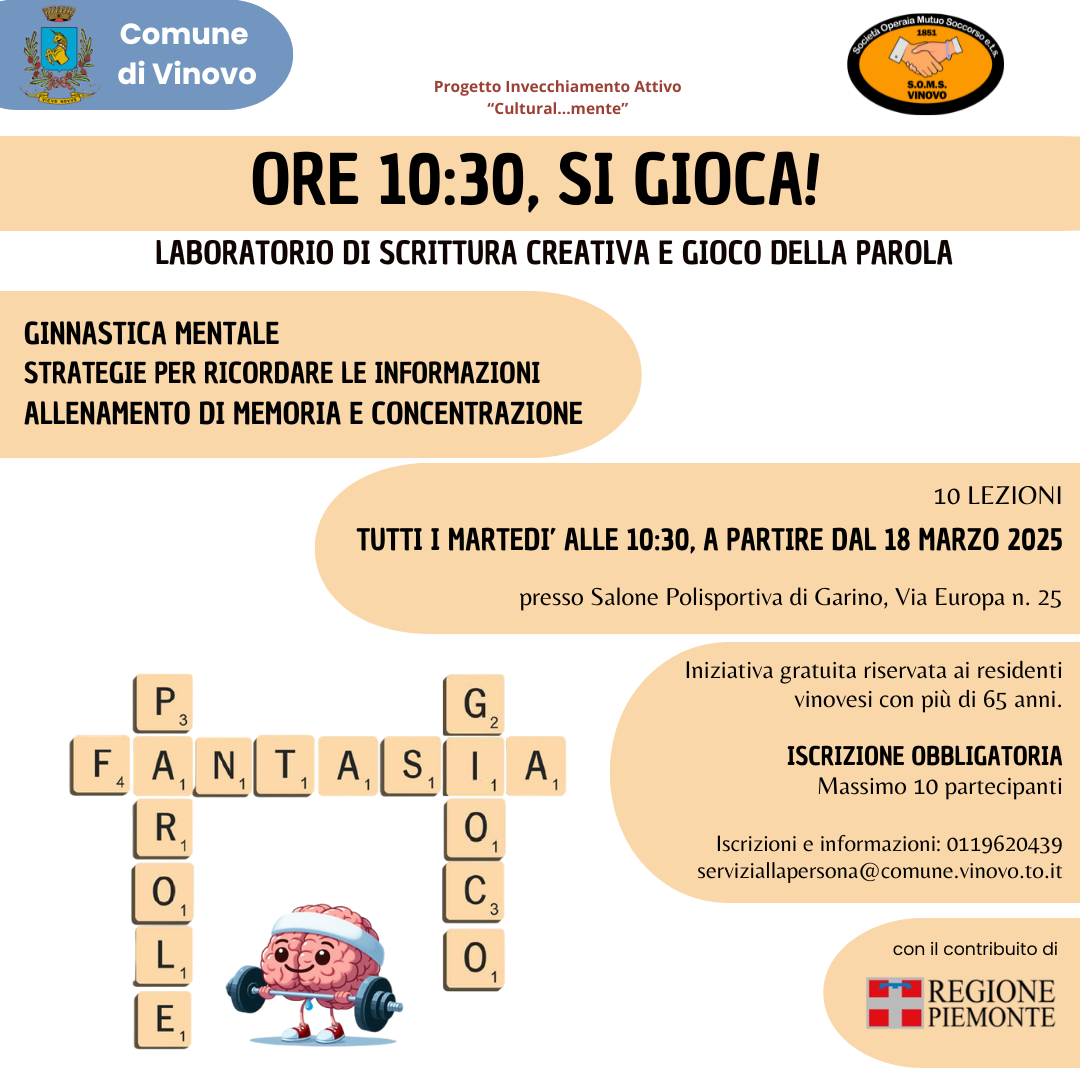 Attività rientrante nel progetto di invecchiamento attivo "Cultural...mente", finanziato con il contributo della Regione Piemonte.