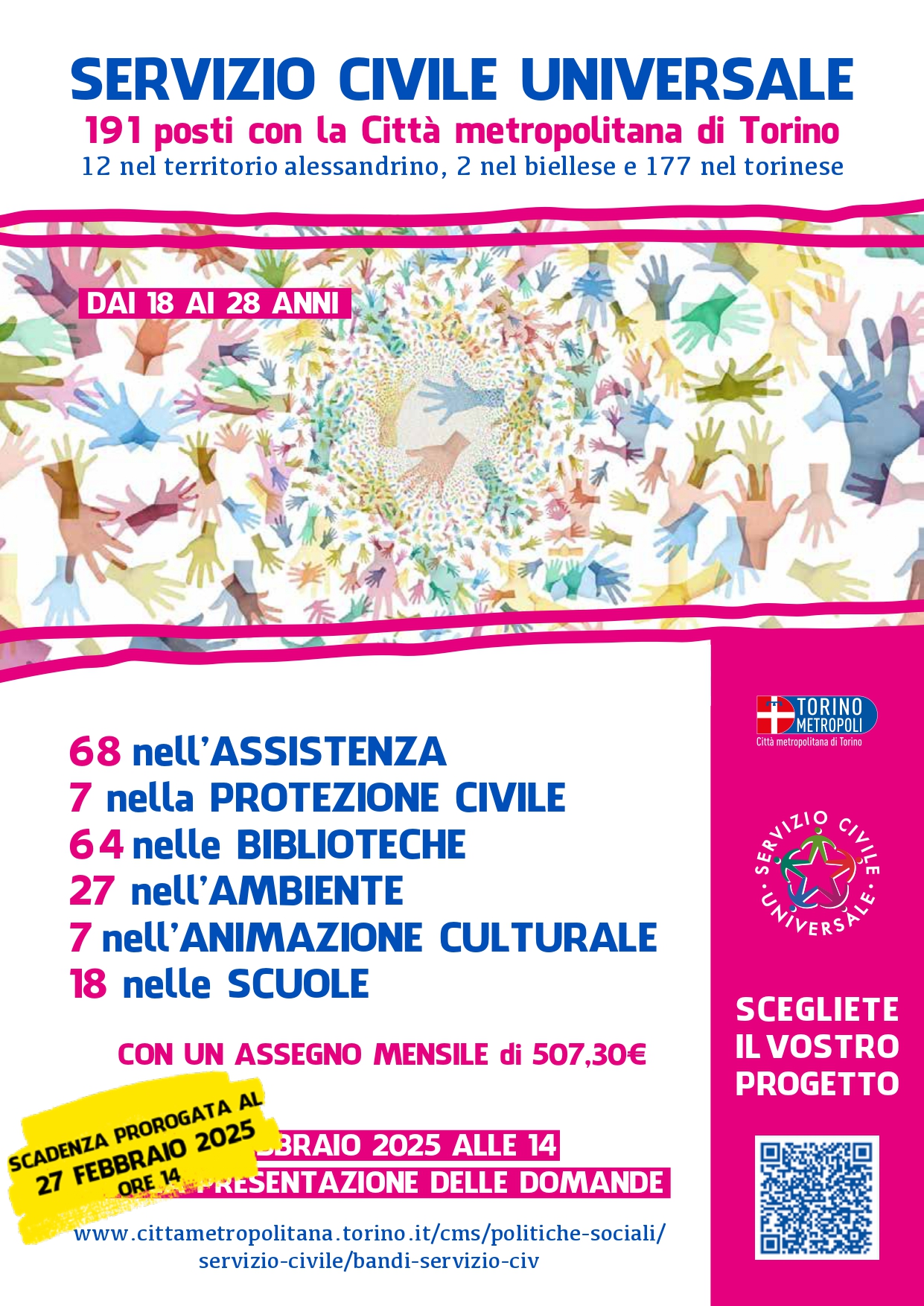 Se hai dai 18 ai 28 anni scegli il tuo progetto di Servizio Civile Universale con la Città metropolitana di Torino.