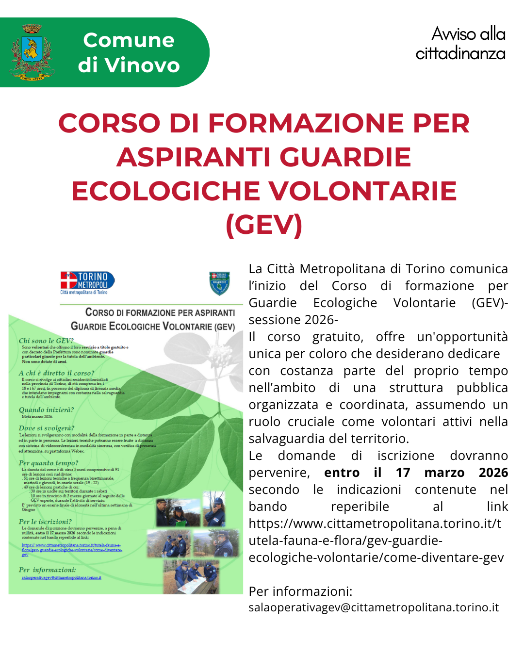 La Città Metropolitana di Torino comunica l’inizio del Corso di formazione per Guardie Ecologiche Volontarie (GEV) - sessione 2026-