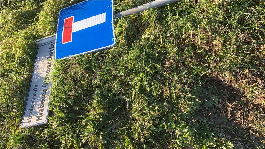 Segnalo che il cartello strada vicinale Miabecco Gianmarchetta posto all'angolo con strada Tetti Berta, dopo il vento del giorno 22/12/2019, è a terra.