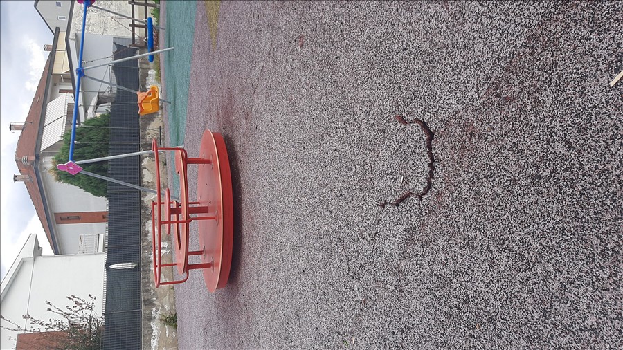Vi segnalo che all'interno del parco giochi di Tetti Rosa , si sta rompendo la pavimentazione, c'è già un buco. Vedi foto