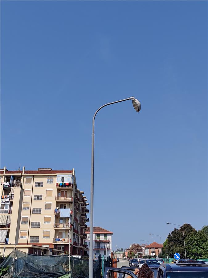 Buon giorno la parabola del palo illuminazione sito in fondo a via Europa 25 a fianco agli Orti Garino, sembra essere pericolante o quanto meno non in posizione corretta (allego Foto)