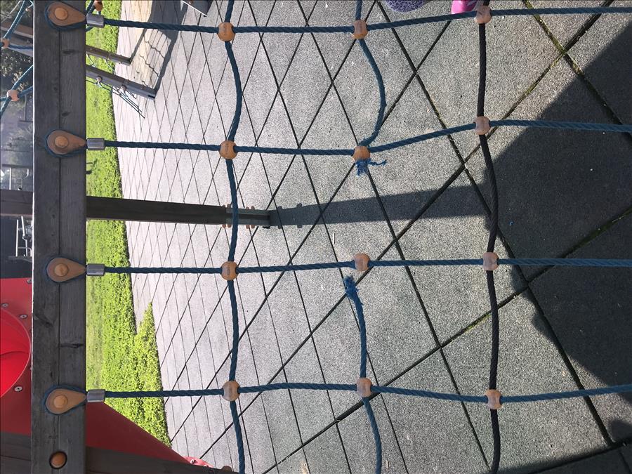 Reitero la segnalazione 105/2023, i giochi al parco del castello sono rotti e pericolosi. Il cavo d’acciaio sulla rete vicino allo scivolo rosso è rotto e sfilacciato e tagliente. È urgente aggiustarlo subito. Grazie