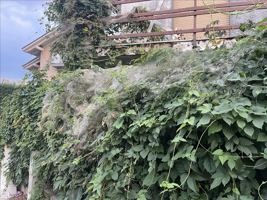 Buongiorno. La mia segnalazione riguarda la presenza di un’infestazione di nidi di qualche insetto simile alla processionaria sulla siepe di una casa mantenuta in via IV novembre poco distante da via Aliberti, a Vinovo. Trattasi di quella casa di proprietà di un signore anziano, che non riesce più a curare i propri spazi esterni. Il problema è che la vite vergine che fa da siepe alla suddetta casa, sono presenti, lato marciapiede, innumerevoli nidi e ragnatele piene di larve. Non so se la specie di questo insetto sia pericolosa o innocua, ma mi sento di segnalare il problema, perché dal momento che la siepe ormai sporge parecchio, sìqualcuno potrebbe, passando, finirci dentro.