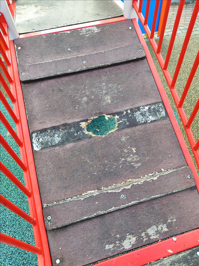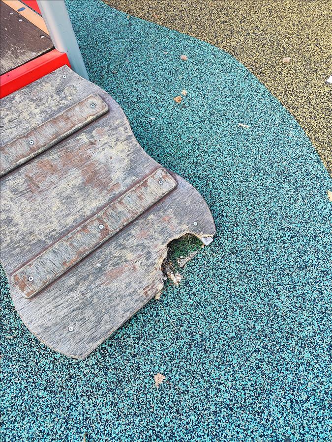 Gentile utente l'ufficio competente ha affidato i lavori di manutenzione ordinaria delle attrezzature ludiche e pertanto verrà riparato in tempi brevi.
