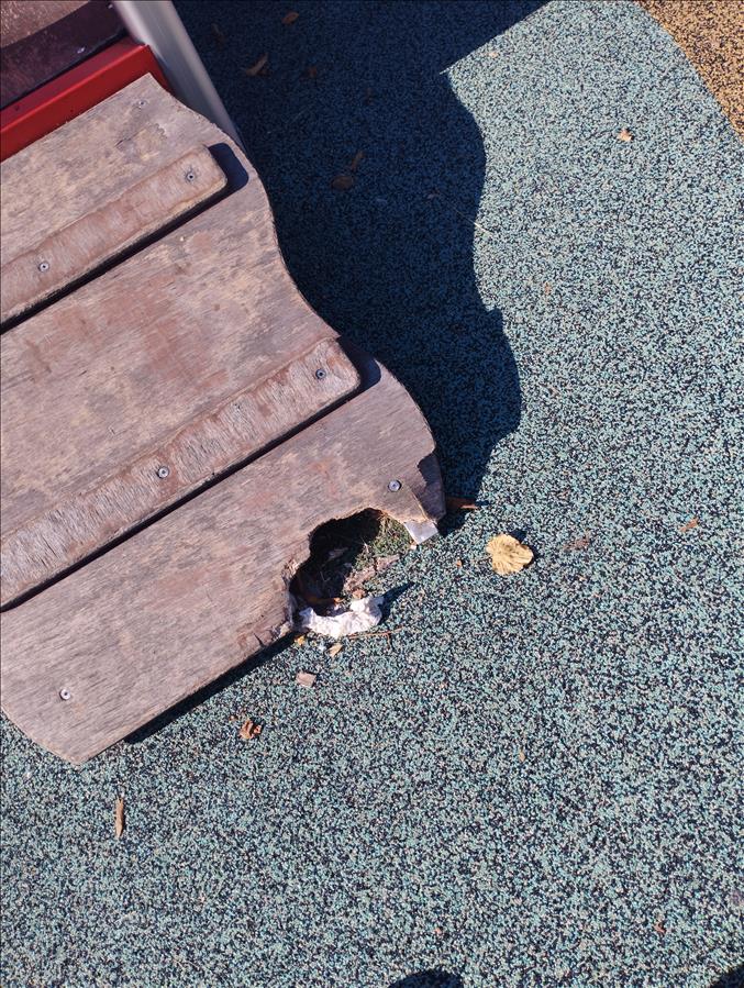 Buongiorno lo scivolo di Garino in Piazza 1 Maggio ha la pedana rotta in due punti.