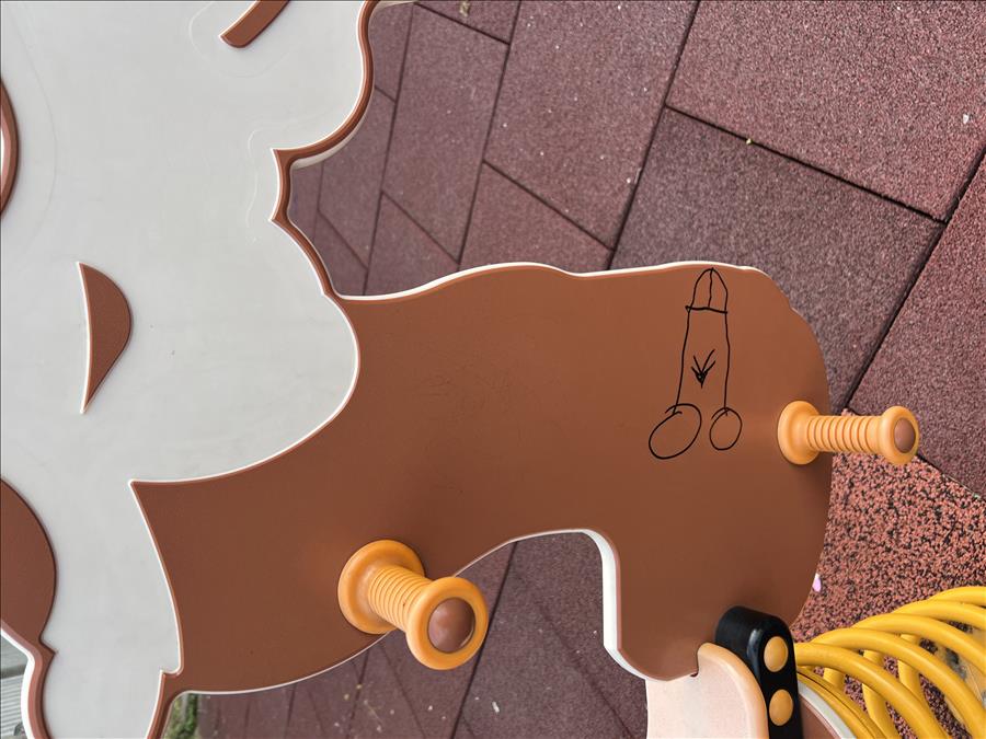 Il parco giochi di via Carignano é in condizioni di degrado importante, sporchissimo e con disegni osceni sui giochi.