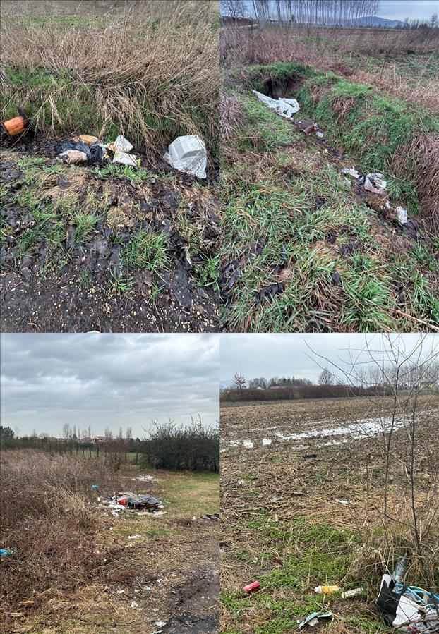 Segnalo parecchi rifiuti abbandonati lungo i fossi presenti in strada tetti grella a Vinovo