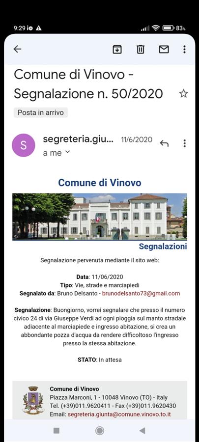 Salve, provo a inviare nuovamente la segnalazione numero 50/2020 fatta al comune e agli uffici preposti, in quanto ad oggi non ho avuto nessuna risposta o riscontro concreto e dopo circa 2 anni e ripetute richieste di delucidazioni il problema è sempre uguale come è stato segnalato. Ringrazio per l'attenzione.