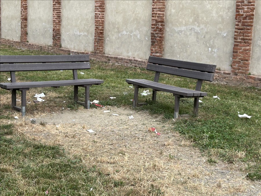 C’è immondizia e sporcizia sparsa per tutto l’area giochi del parco del Castello