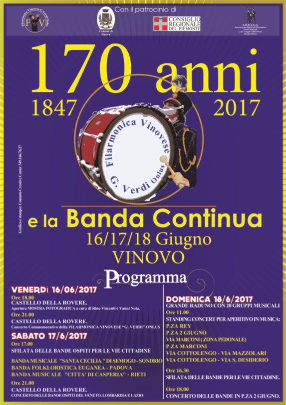 La Filarmonica Vinovese "G.Verdi" in collaborazione con il Comune di Vinovo celebra i 170° anni di fondazione con un ricco programma.