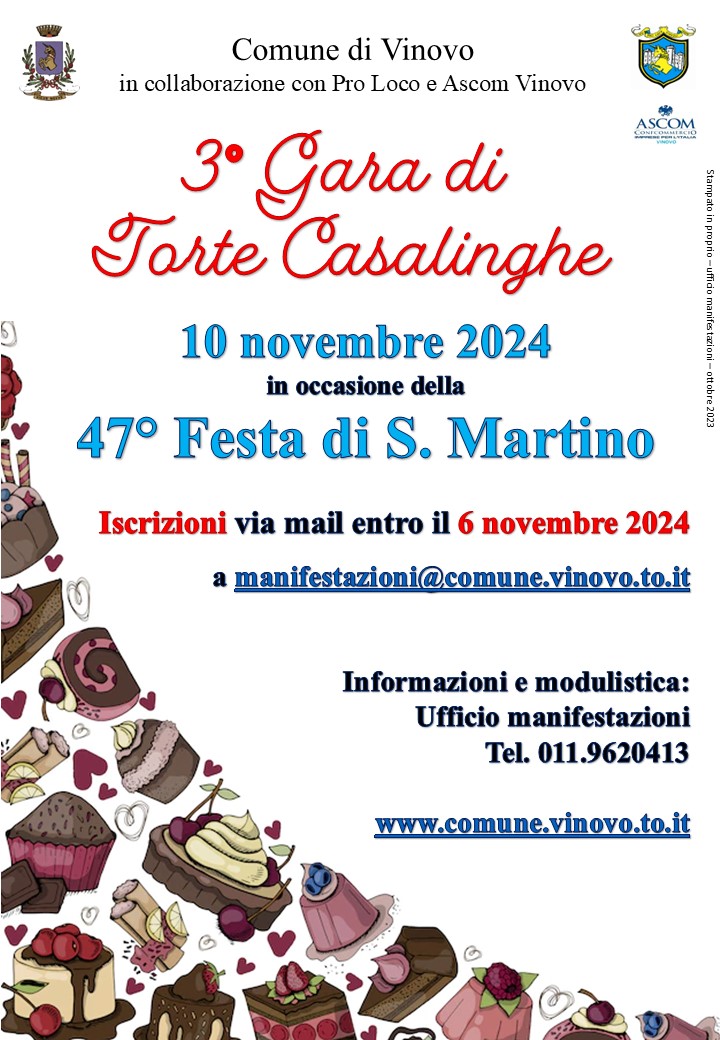 Informazioni e iscrizioni via mail entro il 6 novembre 2024 a manifestazioni@comune.vinovo.to.it