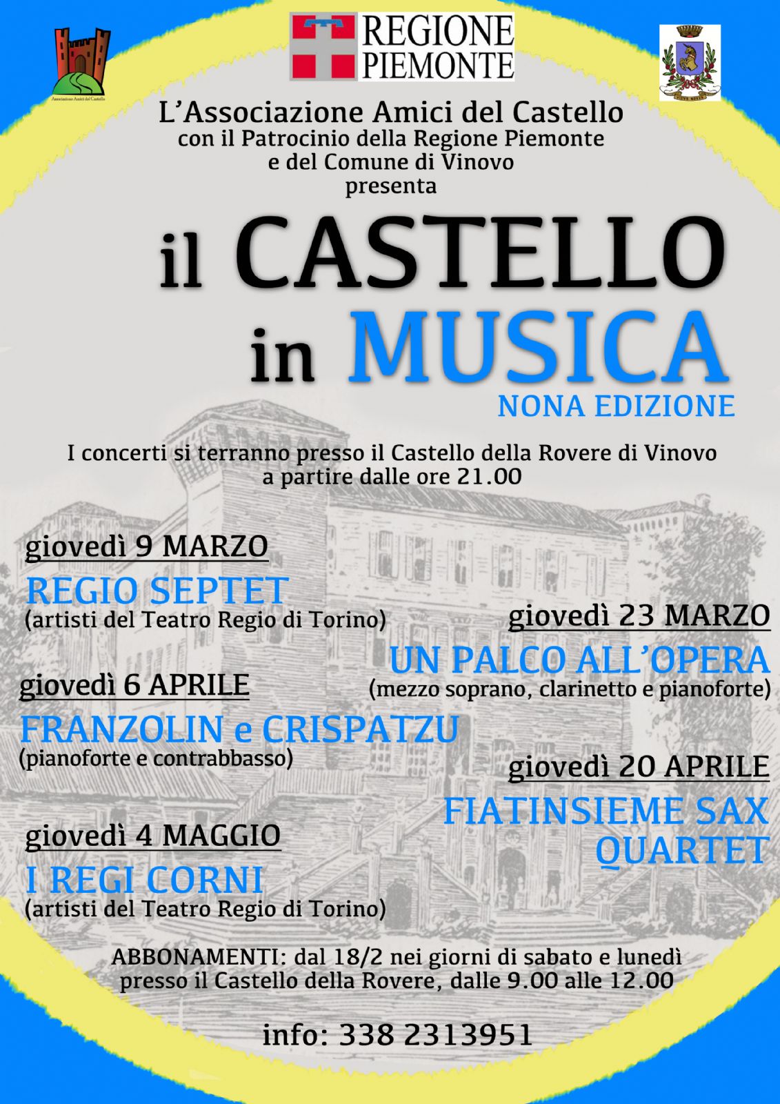 2017, nona edizione de “IL CASTELLO IN MUSICA”. Dal 9 marzo, 5 serate al Castello della Rovere di Vinovo.