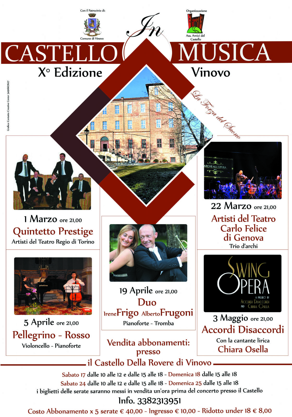 La rassegna di musica da camera, Castello in Musica, è giunta alla 10° edizione sempre all'insegna della buona musica con maestri provenienti dal Teatro Regio di Torino e, quest'anno, anche dal Teatro Carlo Felice di Genova.