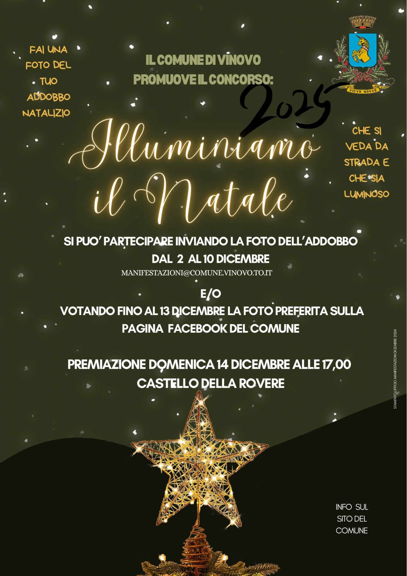 Inviate le foto dei vostri balconi, terrazzi, finestre e giardini illuminati dal 2 al 10 dicembre a questo indirizzo manifestazioni@comune.vinovo.to.it