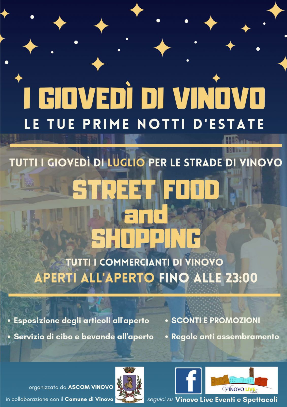 L'Associazione Commercianti in collaborazione con il Comune vi aspettano tutti i giovedì di Luglio per le strade di Vinovo con Street Food e Shopping.