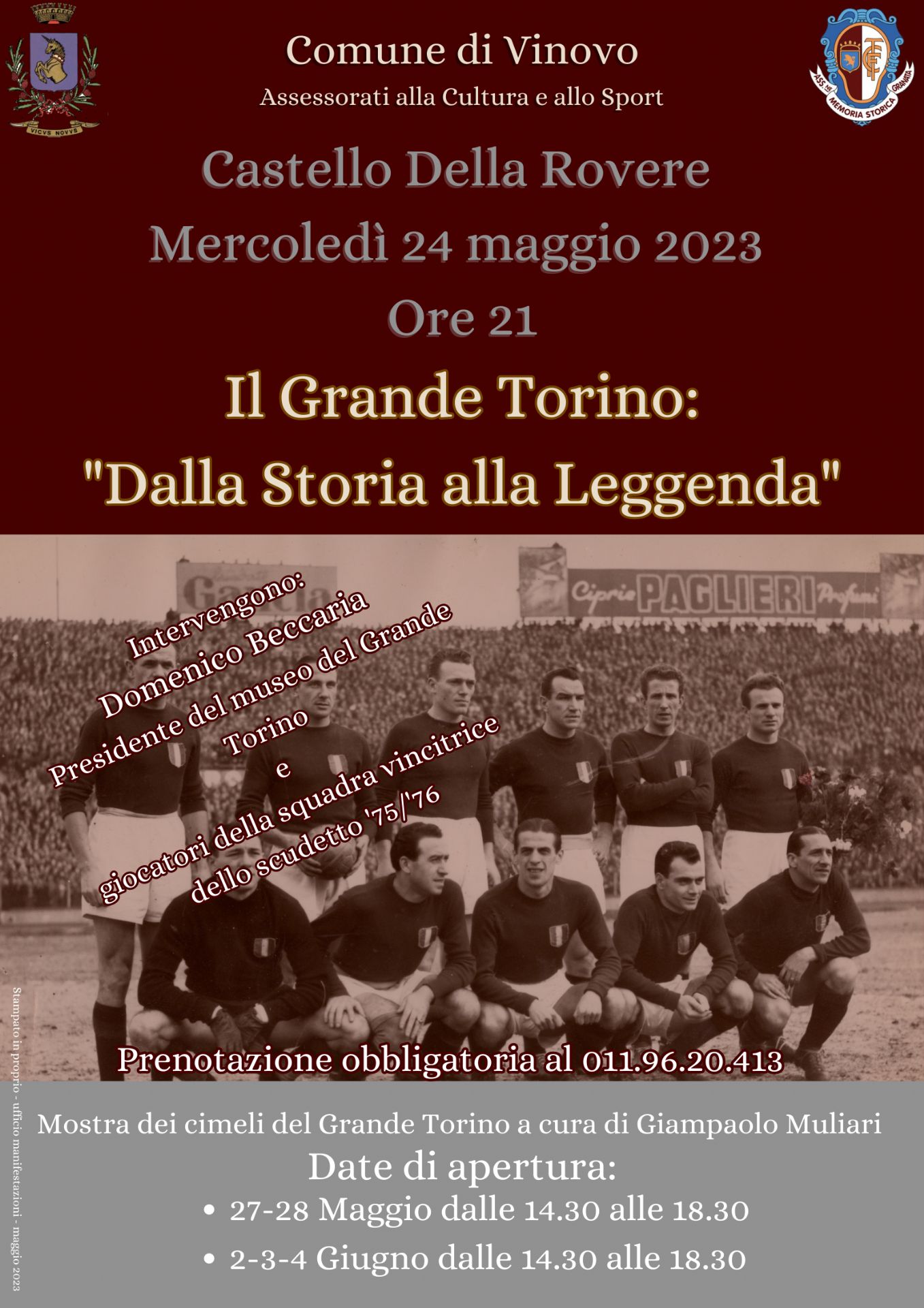 Incontro con Domenico Beccaria, presidente del museo del Grande Torino e i giocatori della squadra che vinse lo scudetto '75/'76