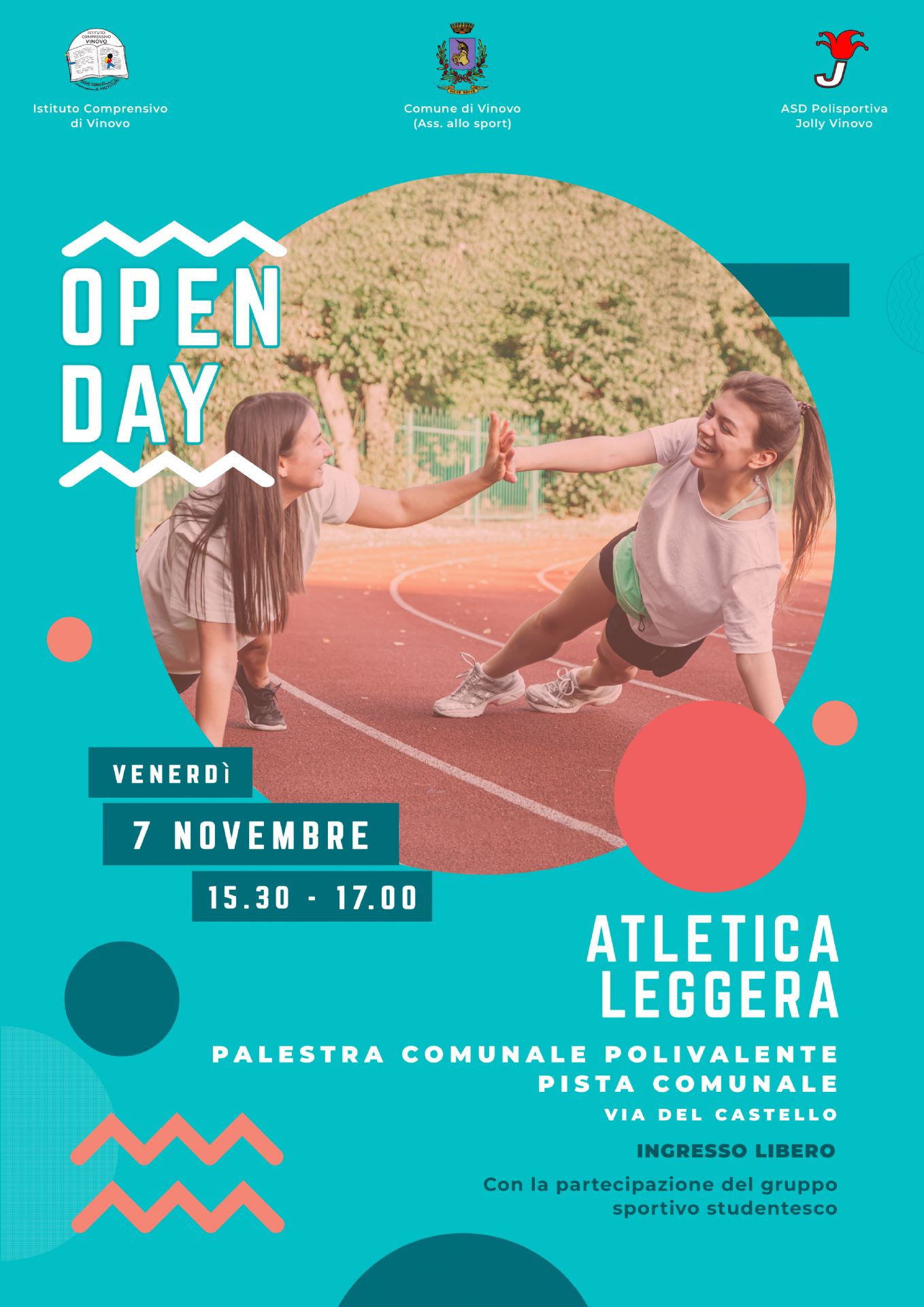 Venerdì 7 novembre 2025 dalle 15.30 alle ore 17 open day di Atletica leggera presso la pista di atletica sita in via del Castello.