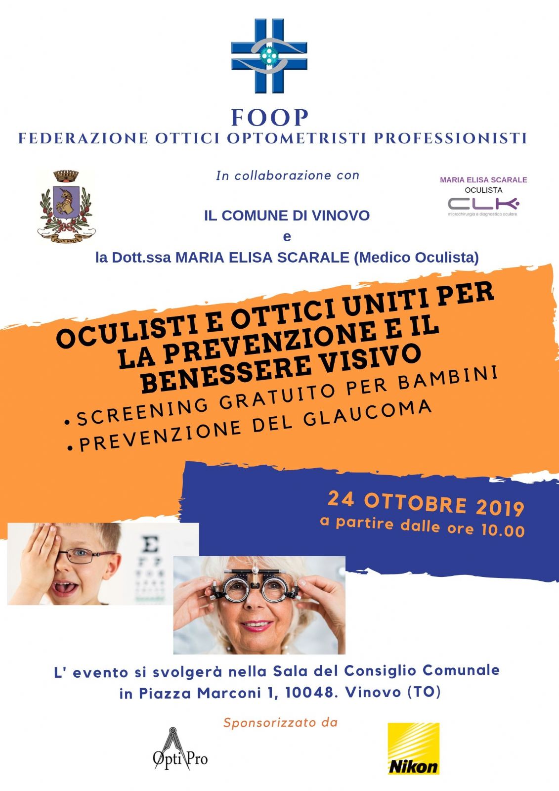 Giovedì 24 ottobre dalle ore 10 alle ore 18.30 presso la Sala del Consiglio Comunale sarà possibile sottoporsi gratuitamente a specifici esami della vista finalizzati alla prevenzione di malattie oculari.