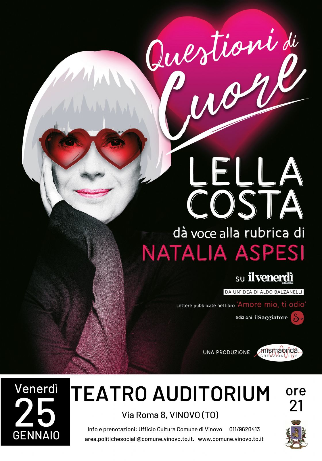 Le Lettere del Cuore di Natalia Aspesi sul Venerdì di Repubblica diventano uno spettacolo. Un viaggio attraverso la vita sentimentale e sessuale degli italiani nel corso degli ultimi trent'anni. I tradimenti, le trasgressioni, le paure, i pregiudizi. Migliaia di storie d’amore e passione che, incredibilmente, non cambiano con il passare dei decenni e l’evoluzione del costume. Dalla ragazzina infatuata per un uomo tanto più grande di lei, alla donna che ama essere picchiata, dalla signora che s’innamora di un sacerdote, alla moglie tradita e abbandonata, dal giovane che si scopre gay, al maschio orgoglioso della sua mascolinità. Tutti hanno impugnato la penna (più recentemente la tastiera del pc) per scrivere a Natalia Aspesi chiedendo un consiglio, un parere. E le risposte, argute, comprensive, feroci, spesso sono più gustose delle domande. A dare voce sul palco a questa corrispondenza Lella Costa, in un gioco di contrappunti tra botta e risposta che raggiunge tutte le sfumature, i diversi gradi d'intensità e di intimità.