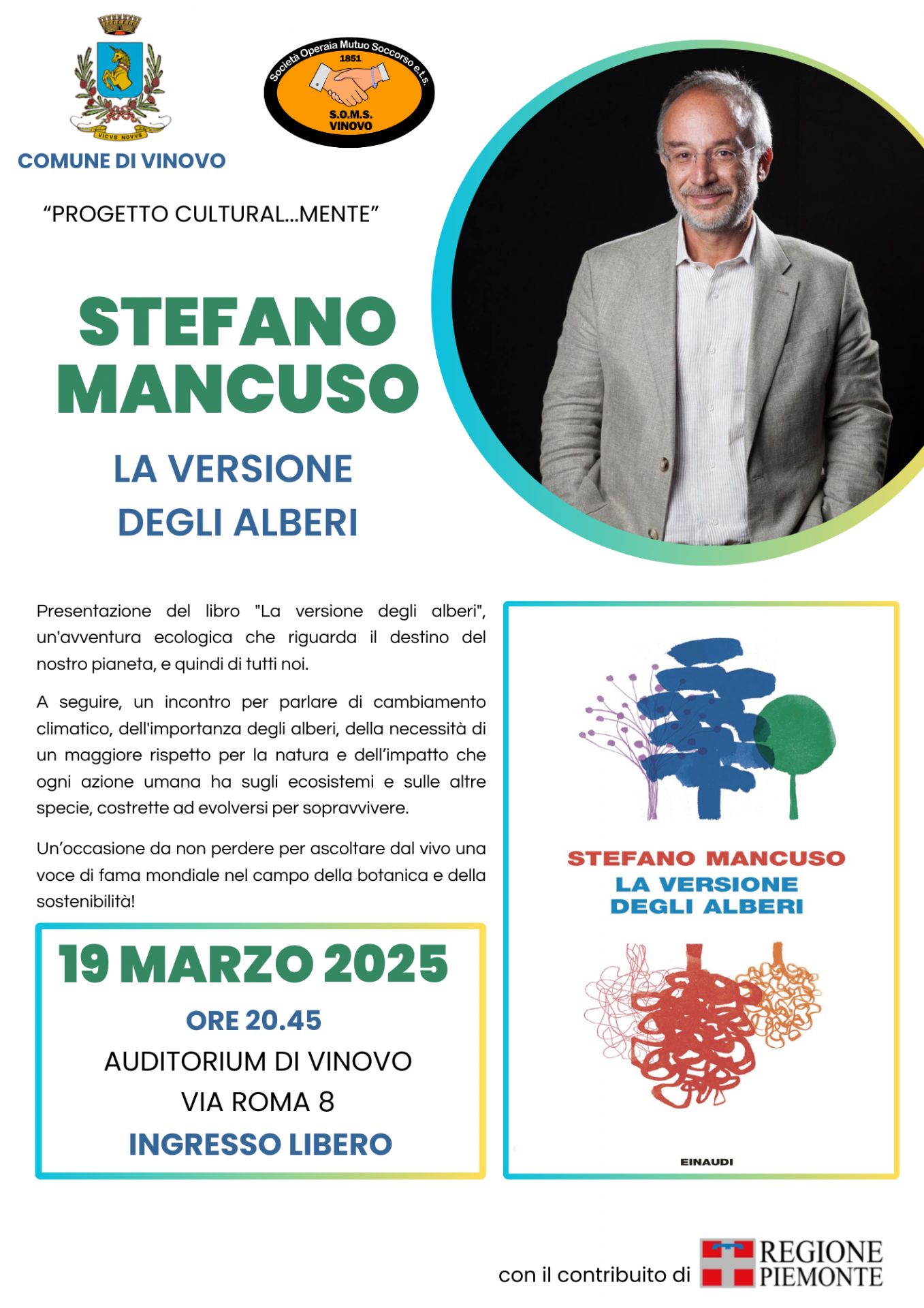 Un evento imperdibile per tutti gli appassionati di natura e scienza: il celebre neurobiologo vegetale Stefano Mancuso sarà protagonista di una serata speciale all'Auditorium di Vinovo il prossimo mercoledì 19 marzo alle ore 20.45.