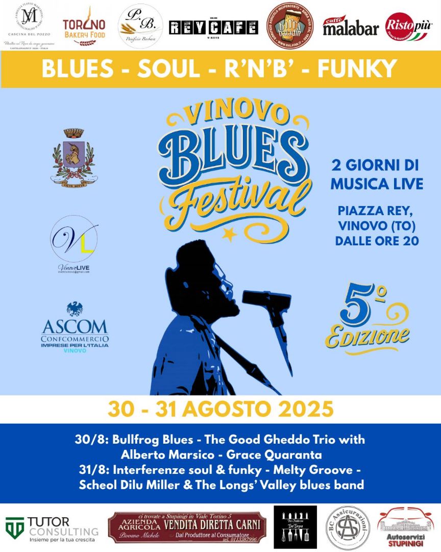 Torna per la sua quinta edizione il Vinovo Blues Festival con due serate di musica dal vivo. Gruppi e solisti si esibiranno in Piazza Rey dalle ore 20.