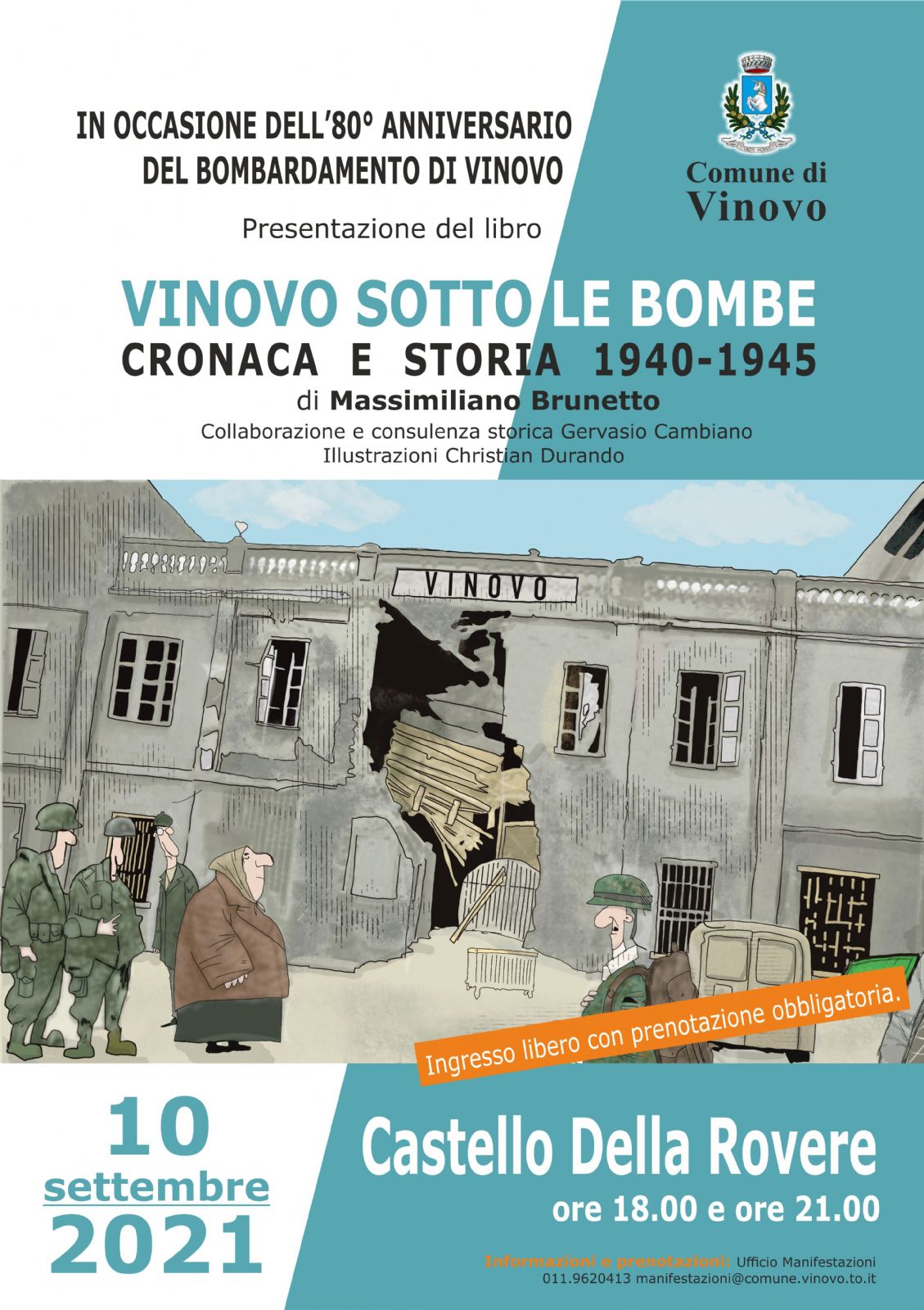 In occasione dell’80° anniversario del bombardamento di Vinovo, avvenuto nella notte tra 10 e l’11 settembre 1941, sarà presentato il libro “Vinovo sotto le bombe. Cronaca e storia 1940-1945” presso il salone degli Affreschi del Castello Della Rovere il giorno 10 settembre 2021 alle ore 18 e alle ore 21.