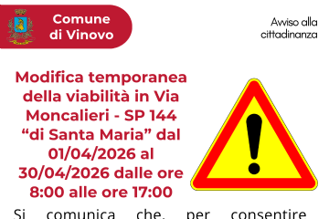 Leggi tuttoModifica temporanea della viabilità dal 01/04/2026 al 30/04/2026 sp 144 di Santa Maria-Via Candiolo