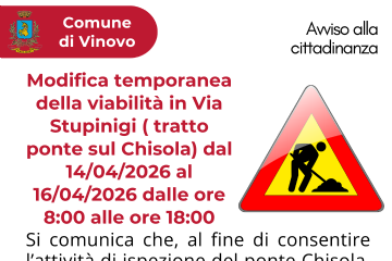 Modifica temporanea della viabilità in Via Stupinigi (ponte del Chisola) dal 14/04/2026 al 16/04/2026