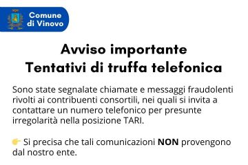 Sono state segnalate chiamate e messaggi fraudolenti rivolti ai contribuenti consortili, nei quali si invita a contattare un numero telefonico per presunte irregolarità nella posizione TARI.  ...