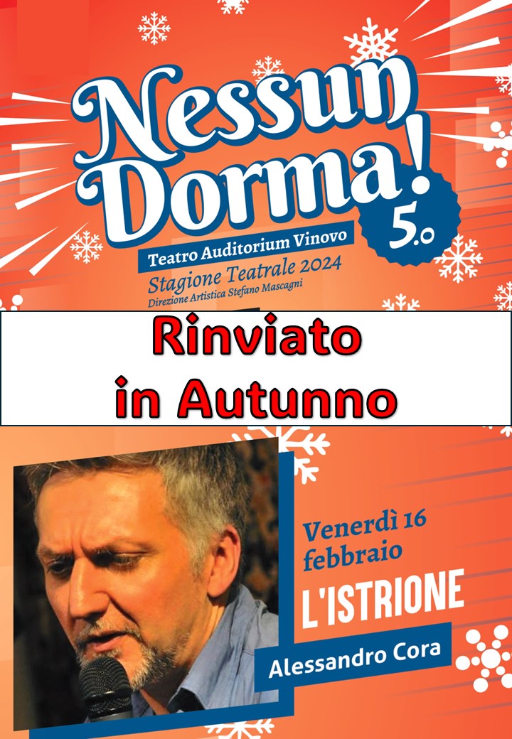 si comunica che, per impedimenti dell'artista, lo spettacolo "L'istrione", è rinviato in AUTUNNO.