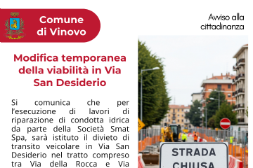 Divieto di transito veicolare in Via San Desiderio dal 12/01/2026 al 14/01/2026