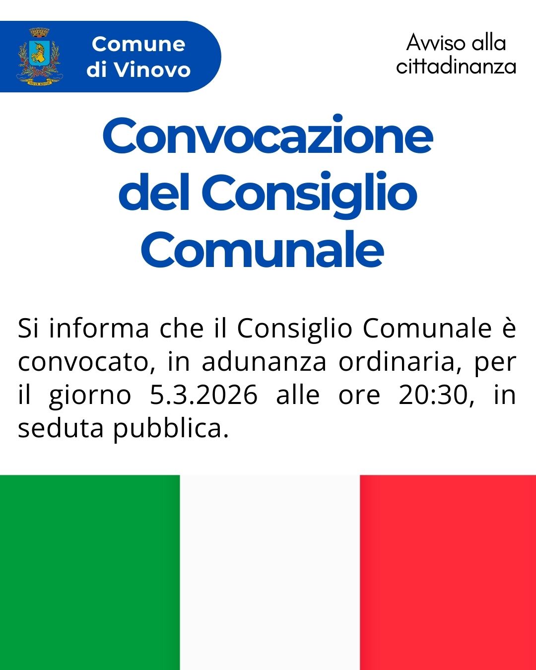 Si informa che il Consiglio Comunale è convocato, in adunanza ordinaria, per il giorno 5.3.2026 alle ore 20:30, in seduta pubblica.