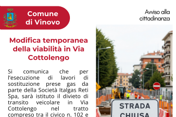 Divieto di transito veicolare in Via Cottolengo nel tratto compreso tra il civico n. 102 e il n.163 dal 15/01/2026 al 31/01/2026
