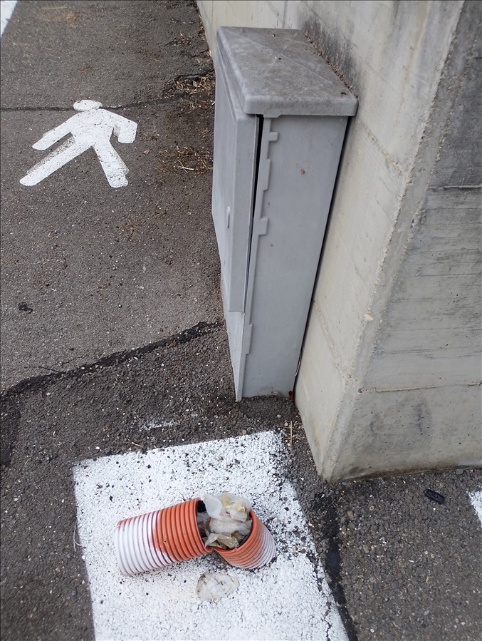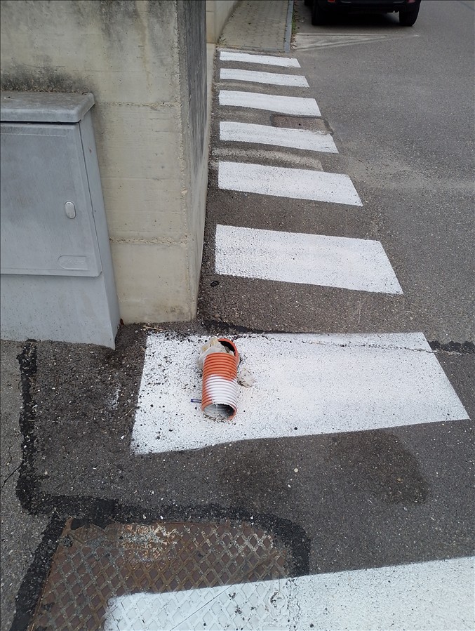 Su via IV novembre angolo via Salvo D'Acquisto vi è un grosso tubo che esce dall'asfalto dove viene riempito di ogni cosa. Tra l'altro sono state ripassate le strisce bianche della strada proprio in corrispondenza del tubo, quindi devo pensare che l'ente comunale sia al corrente.