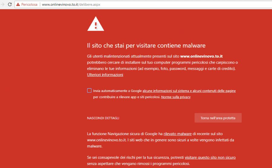 Buongiorno, la rassicuro sull'assenza di Virus sulla pagina istituzionale.