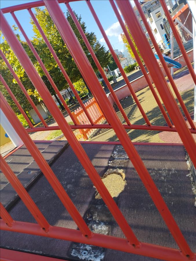 Gentile utente l'ufficio competente ha affidato i lavori di manutenzione ordinaria delle attrezzature ludiche e pertanto verrà riparato in tempi brevi.