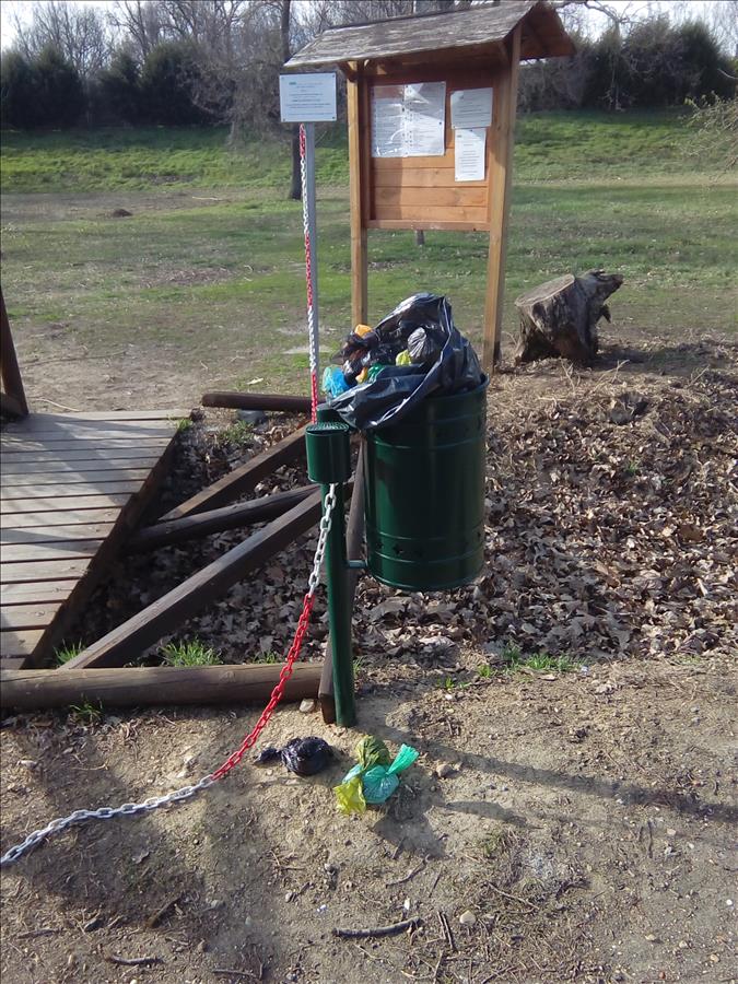 In corrispondenza dei due passaggi in legno del parco villaggio ippodromo sono collocati due cestini di cui uno aggiunto da poco tempo.