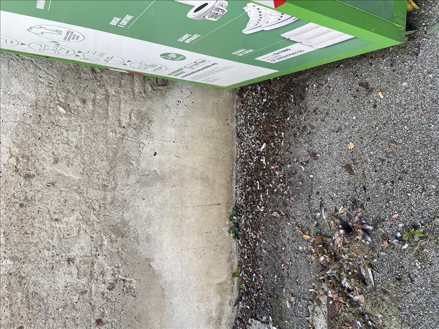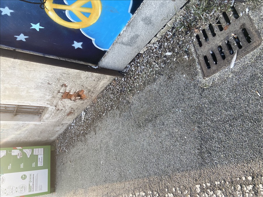 In via De Amicis di fronte alla scuola elementare uno spesso strato di guano di piccione sul bordo della strada.