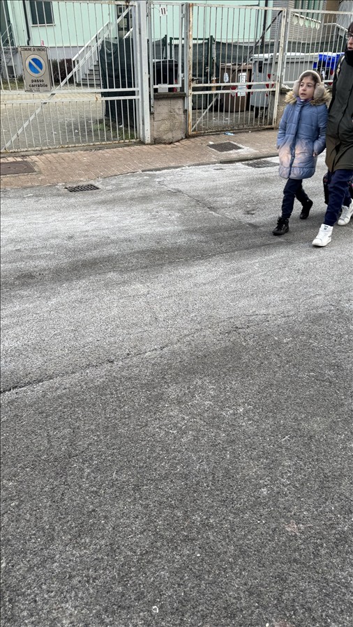 Da giorni la via de Amicis fronte plessi scolastici è ghiacciata e quindi a pericolo di possibili cadute!