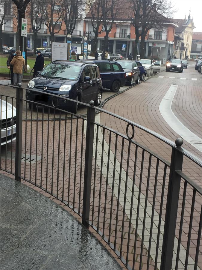 Buonasera, la paternità del problema che Vi segnalo è da ascriversi totalmente alla maleducazione di "noi" automobilisti, ovvero l'occupazione sistematica e selvaggia del marciapiedi di Piazza Marconi antistante il porticato. E' fattibile l'installazione di arredo urbano o dissuasori per mitigare il problema? Eventualmente si può valutare l'installazione di una ringhiera medesima tipologia di quella che circonda la fontana? Grazie per l'attenzione. Saluti. All.ti : 1 foto. Liborio Giannetto